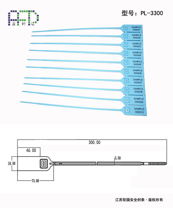 产品名称:PL-3300塑料封条 产品结构:装配型,方形锁芯一字孔