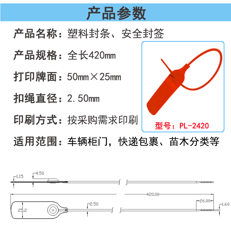 产品名称:PL-2420塑料封条 产品结构:装配型,圆形锁芯