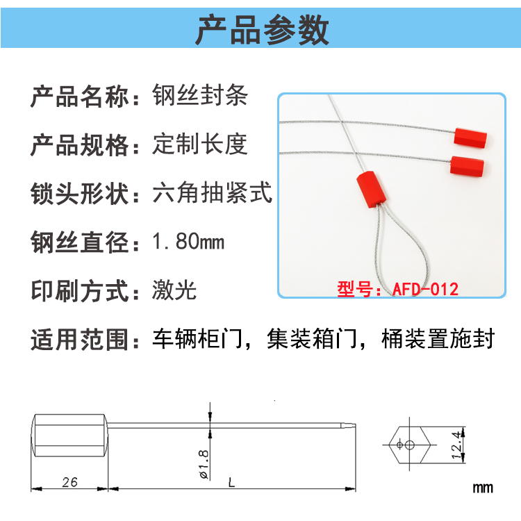产品名称:AFD-012六角钢丝封条 产品结构:抽紧式