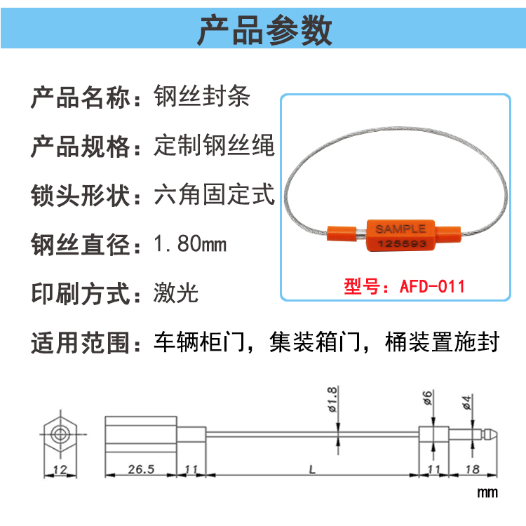 产品名称:AFD-011钢丝封条 产品结构:锁合后固定式